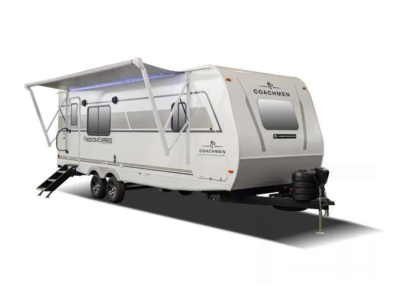 The Freedom Express Select travel trailers by Coachmen are the affordable choice for ultra-lite luxury. These models feature Coachmen's signature two-step vacuum bonded and pinch rolled sidewalls with Azdel interior and exterior and popular features to bring you a lightweight trailer for all your camping trips!
