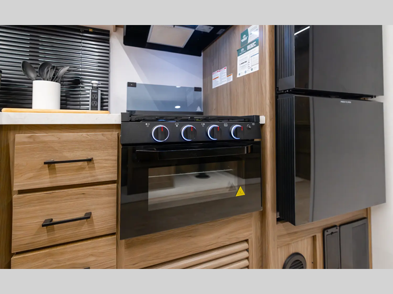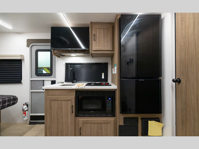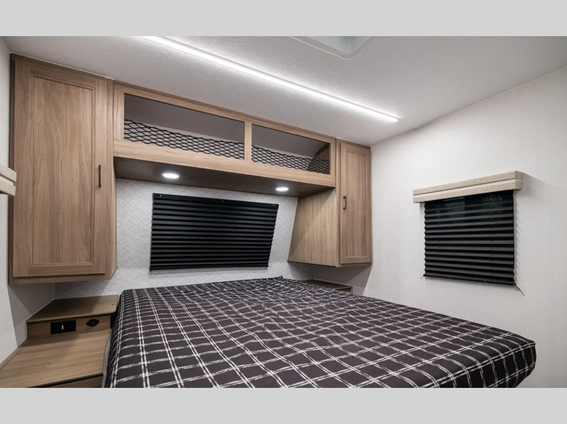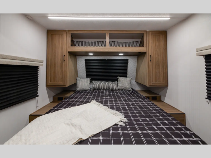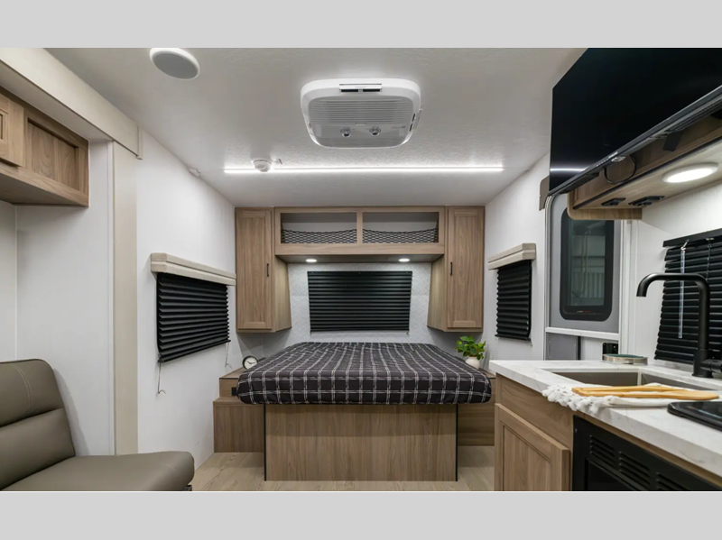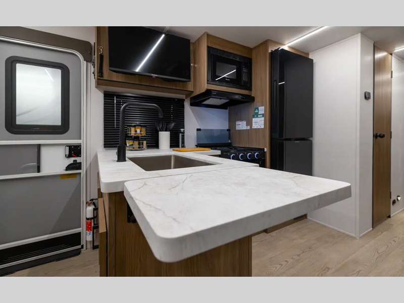 With each model you will find a heated and enclosed underbelly, Dicor Tufflex PVC Roofing, and Dexter E-Z Lube axles for smooth towing. The velarium velocity switch power awning with light strip will provide an inviting outdoor living space, and there is a convenient pet leash and bottle opener. Inside, you will appreciate the wear-resistant vinyl flooring and the night shades for privacy. These travel trailers also include a power tongue jack so you can easily hitch up and head out!
