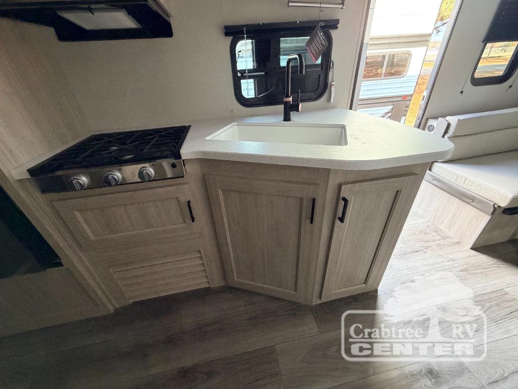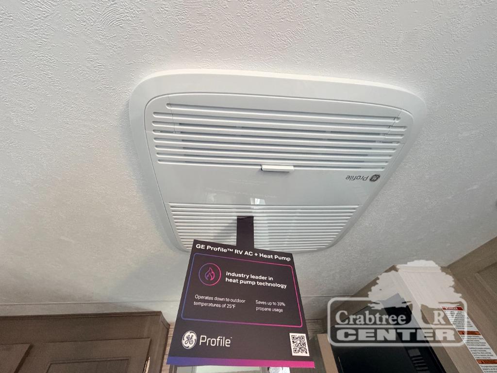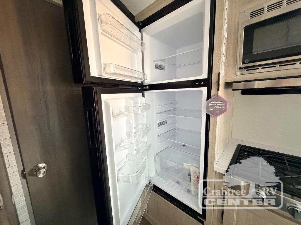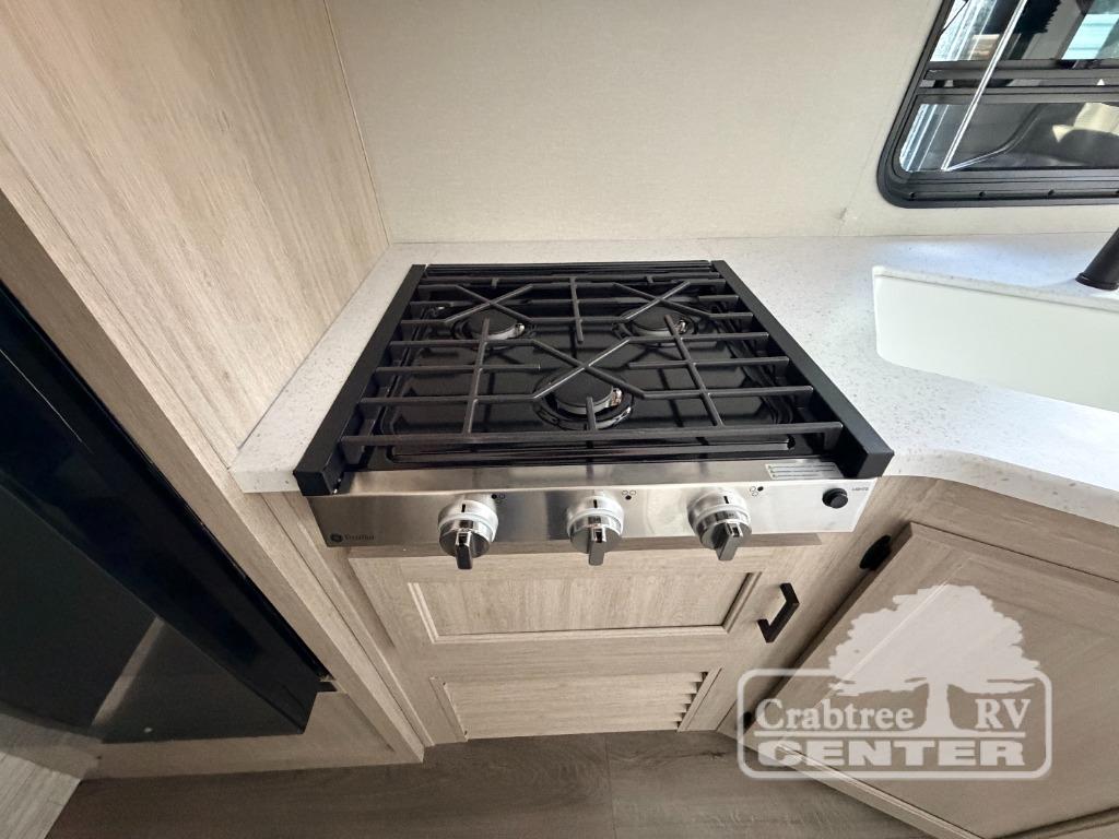 You and your partner will love the layout of this trailer with a walk-through bathroom which is convenient for you when you are in the front bedroom, and handy for your guests when they stay overnight on the U-shaped dinette. The rear U-shaped dinette includes dual end tables to set your drink on, and the theater seating within the slide out will let you relax each evening. The galley kitchen offers all the appliances needed to make all your meals, such as a GE stainless three burner cooktop, a GE stainless microwave, plus a GE stainless 10.7 cu. ft. 12V refrigerator. You will have your own side of the walk-around queen bed and a wardrobe, as well as USB ports and outlets in the nightstands.
