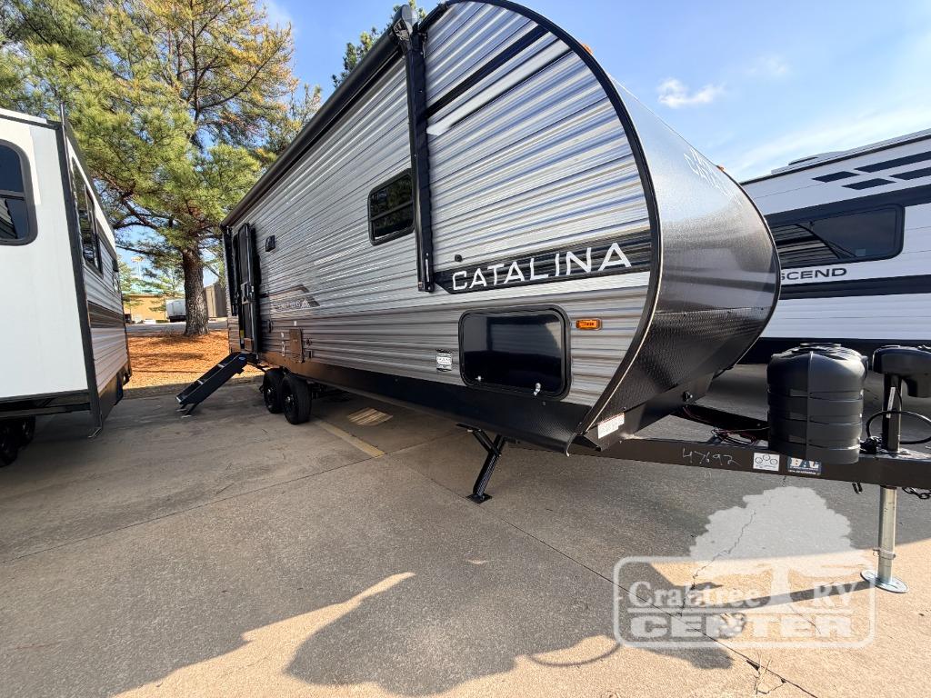 With any Catalina Summit Series 8 by Coachmen you will enjoy an affordable travel trailer packed with at-home comforts! The solid construction includes a Norco electromagnetic powder coated chassis, a seamless Alpha roof membrane, and full length frame outriggers for maximum support and durability. EZ lube axles with leaf spring suspension and self adjusting brakes provide smooth towing from home to campground, and the premium exterior graphics package is sure to turn heads as you travel down the highway. You will love the features included, such as a JBL Aura Cube media center, magnetic baggage door latches, 4,000 lumen interior touch lighting, and the list goes on!