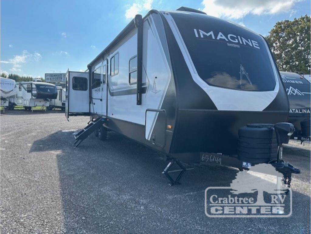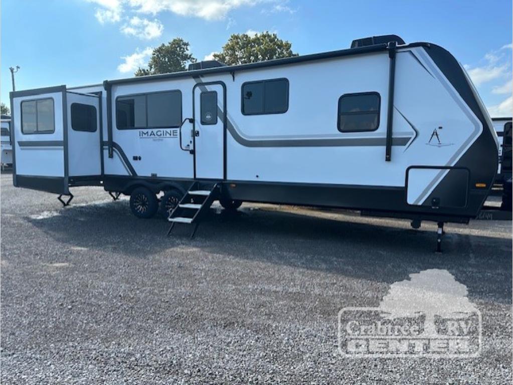 Just imagine leaving the world behind and secluding yourself away with your favorite people in your Grand Design Imagine travel trailer! The Imagine has been designed to enjoy extended season camping and includes a high-capacity furnace, a heated and enclosed underbelly with suspended tanks, a designated heat duct to the subfloor, and a high-density roof insulation with attic vent. You'll have maximum head room on the interior with 81" radius ceilings, and large panoramic windows to let in natural lighting. The exclusive drop-frame pass-through storage compartment is going to allow you to bring along lots of equipment, and the universal docking station is an all-in-one location for utilities and hook-ups. You'll also have oversized tank capacities so that you can fill and empty your tanks less often.