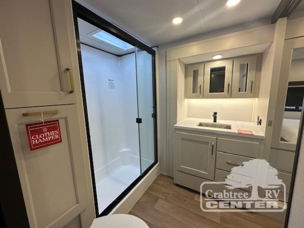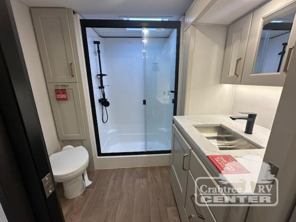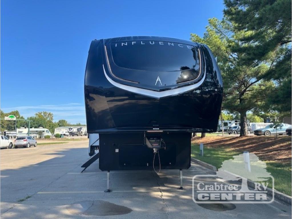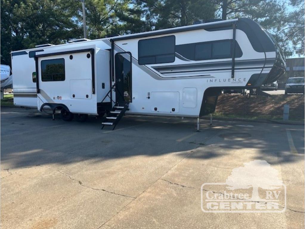 Any Grand Design Influence fifth wheel features five-sided aluminum cage construction with a walk-on roof and a fully enclosed underbelly with heated tanks and storage for all weather camping. For peace of mind, the MORryde CRE3000 Suspension system will provide safe and smooth towing, and the 101" widebody construction offers all the room you need and that is before multiple slides are fully engaged. You will appreciate the Keyed-Alike locks, slam-latch baggage doors with magnetic door catches, exterior security light, and SolidStep entry steps. On the inside, Congoleum flooring, premium roller shades for privacy, a hallway handrail for safety, and nightstands with USB ports to keep all of your electronics fully charged. You will also love the On Demand tankless water heater when showering, plus the added heat and ambiance from an electric fireplace, and so much more!