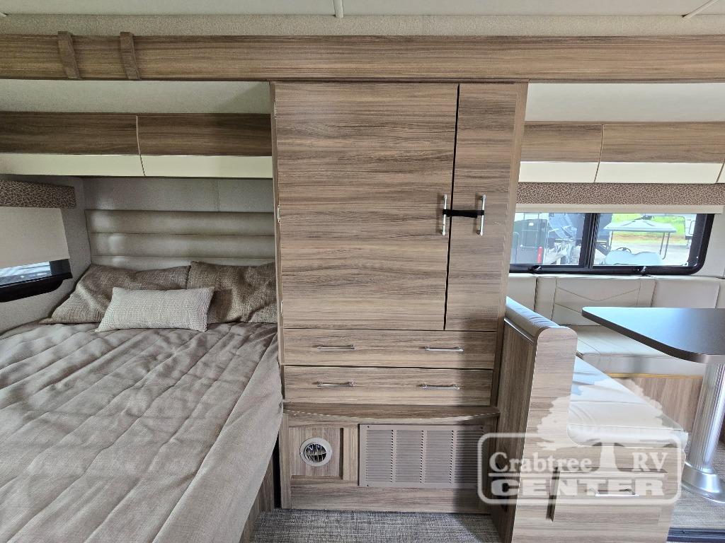 The Jayco Melbourne Prestige class C diesel motorhome offers luxury for the adventure enthusiasts. With its modern style and the automotive-bonded panoramic window in the front cap, the Soundstream Infotainment dash radio with GPS and a CD/DVD player, the remote control and heated mirrors, the backup camera with monitor, the 12V USB charging station, and the European-style curved cabinetry, this motorhome is going to impress everyone. Choose your favorite model today!